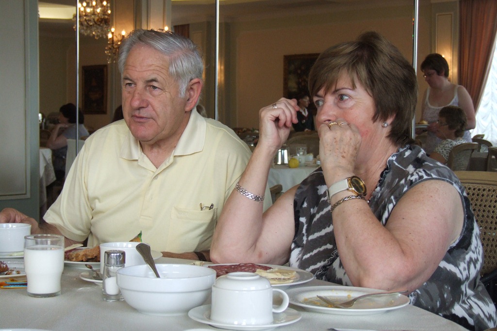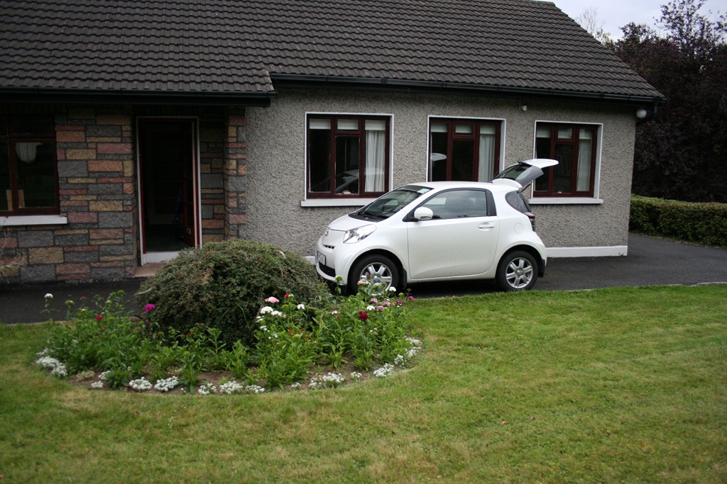 Exercise, shower. White T-shirt, black Bruhl 42” slacks, black/red/green braces, grey Rival sports socks, heavy Connolly walking boots. 3 weetabix, sliced banana, millk; for breakfast. Mowed the front lawn. Weeded around the Sweet William and trimmed the hanging shoots of the cotoneaster. Later took a few snaps with the Canon. Trimmed the currant hedge. Salmon salad, Panini bread, orange; for lunch. Rosanna drove us in my iQ in to Oaklawns. Bought McVities’ shortcake in the shop on St. Alphonsus’ Road. Saluted Paddy Donnelly as we turned the corner in to Oaklawns. He was walking in a suit on the footpath on my side of the car. Made tea and ate 3 shortcake. Rosanna quickly and carelessly mowed the grass front and back. I trimmed the hedge with the Bosch hedge cutter and used the Bosch strimmer to tidy up at the front. Rosanna played 6 in the morning and 12 in the evening; in Greenore. Text’d Aisling in Uganda. She replied. Africa wet and interesting she asserted. In a text Eamonn told me he is returning to Dundalk late tonight. Watered the boxes, baskets, trays, pots. Dead headed the purple trailing plant in the white pot hanging on the right as one enters the back door. I spent a long while at it using the golden Toledo scissors. E-mailed Erik, Gabriela, Tina. Uploaded on the Acer some photos of myself, the iQ, the Sweet William; from the Canon’s memory card. Bought a mid-sized black 4 wheeled case in the Leather shop on the way home from Oaklawns. €99 – €9 concession = €90. I paid €1 parking for 45 minutes outside Partnership Court. Lit fire c 19.30. Worked on the computers until bedtime. Soaked my dentures in Steradent. Brushed my 5 ½ remaining teeth. Read some of my journal for June before I went to sleep under my duvet with one ventilator open in my bedroom.